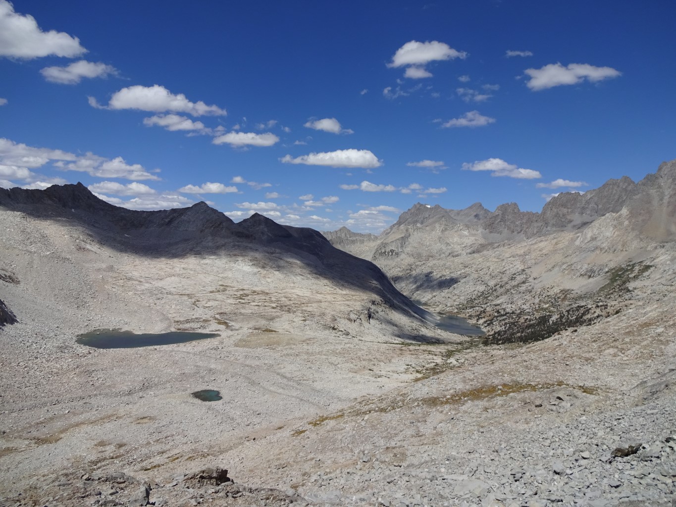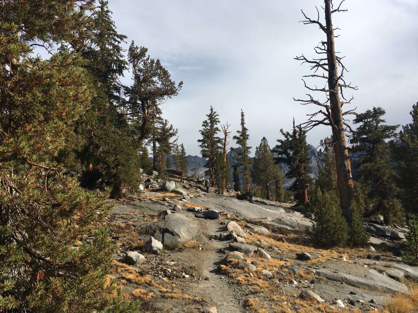 Auf dem 3650 m hohen Pass haben wir wegen der Kälte nur eine kurze Pause gemacht und sind rasch Richtung Süden in tiefere Lagen abgestiegen. Beim Junction zum Charlotte Lake haben wir Mittagspause gemacht und die feuchten Sachen getrocknet. Es wehte immer noch ein kalter böiger Wind. Danach folgte der Abstieg zum Bubbs Creek und der Aufstieg Richtung Forester Pass.