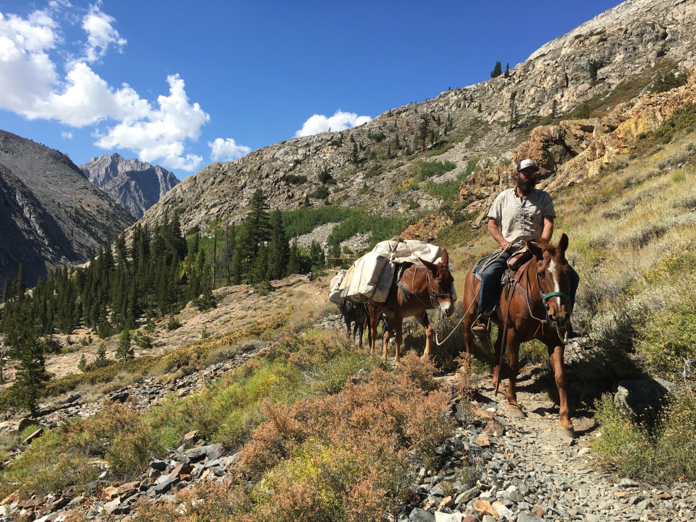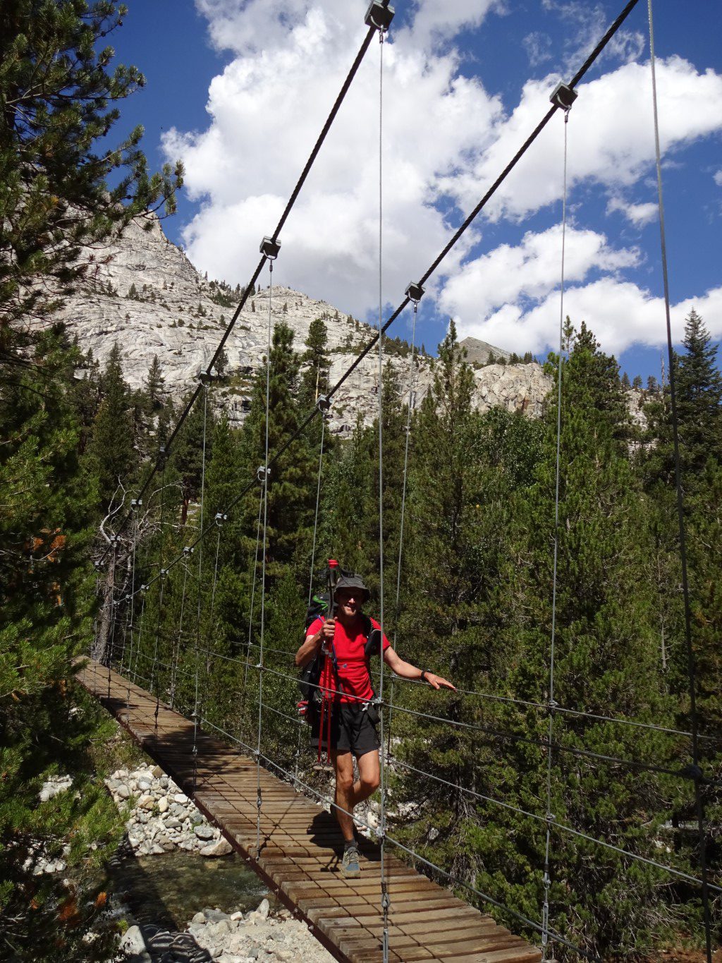 Weiter ging es auf dem langen, aber landschaftlich reizvollen Abstieg bis zur Hängebrücke über den South Fork Woods Creek. Unterwegs sind uns einige schwer bepackte Maultier Karawanen entgegenkommen. Um 12 Uhr haben wir die Hängebrücke, den tiefsten Punkt des heutigen Tages erreicht. Nach einer kurzen Pause machen wir uns an den Aufstieg Richtung Glen Pass.