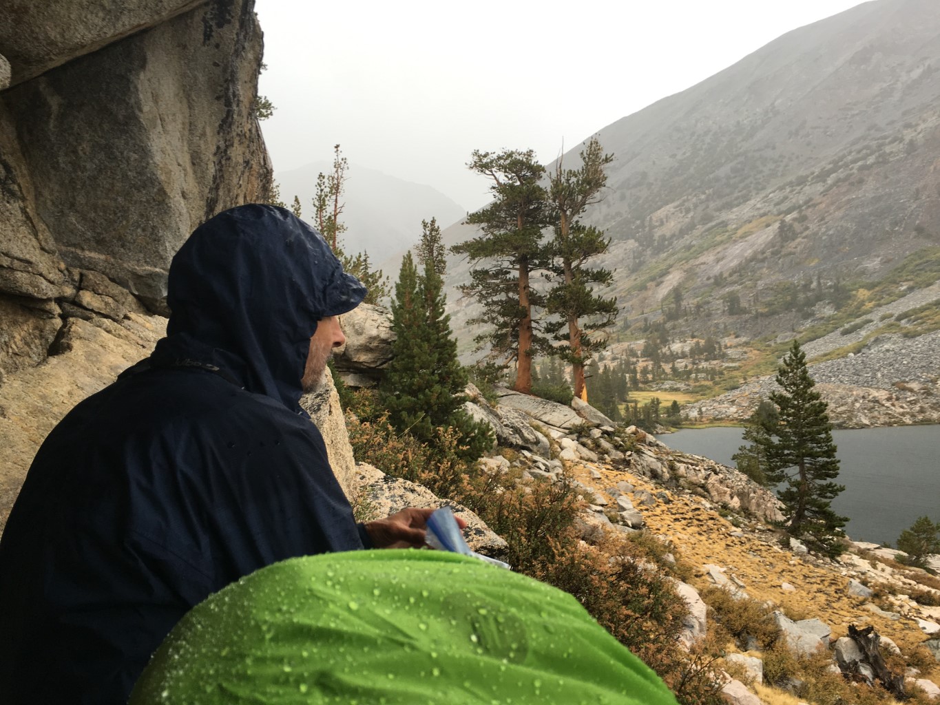 Etwa um 16 Uhr erreichen wir die Rae Lakes, das heutige Etappenziel. Wir bauen die Zelte auf, kochen Tee und wärmen uns etwas auf. Weil es recht kühl und nass ist, kochen wir gleich das Abendessen und verkriechen uns um halb sieben bereits in den warmen Schlafsack.