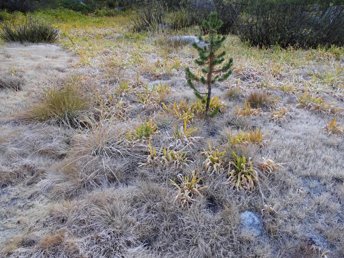 Es war wieder eine sehr kalte Nacht mit Temperaturen beim Gefrierpunkt. Ich habe im Schlafsack die Daunenjacke, Handschuhe und die Mütze angezogen, um einigermaßen warm zu haben. Am Morgen waren Zelt und Schlafsack feucht.