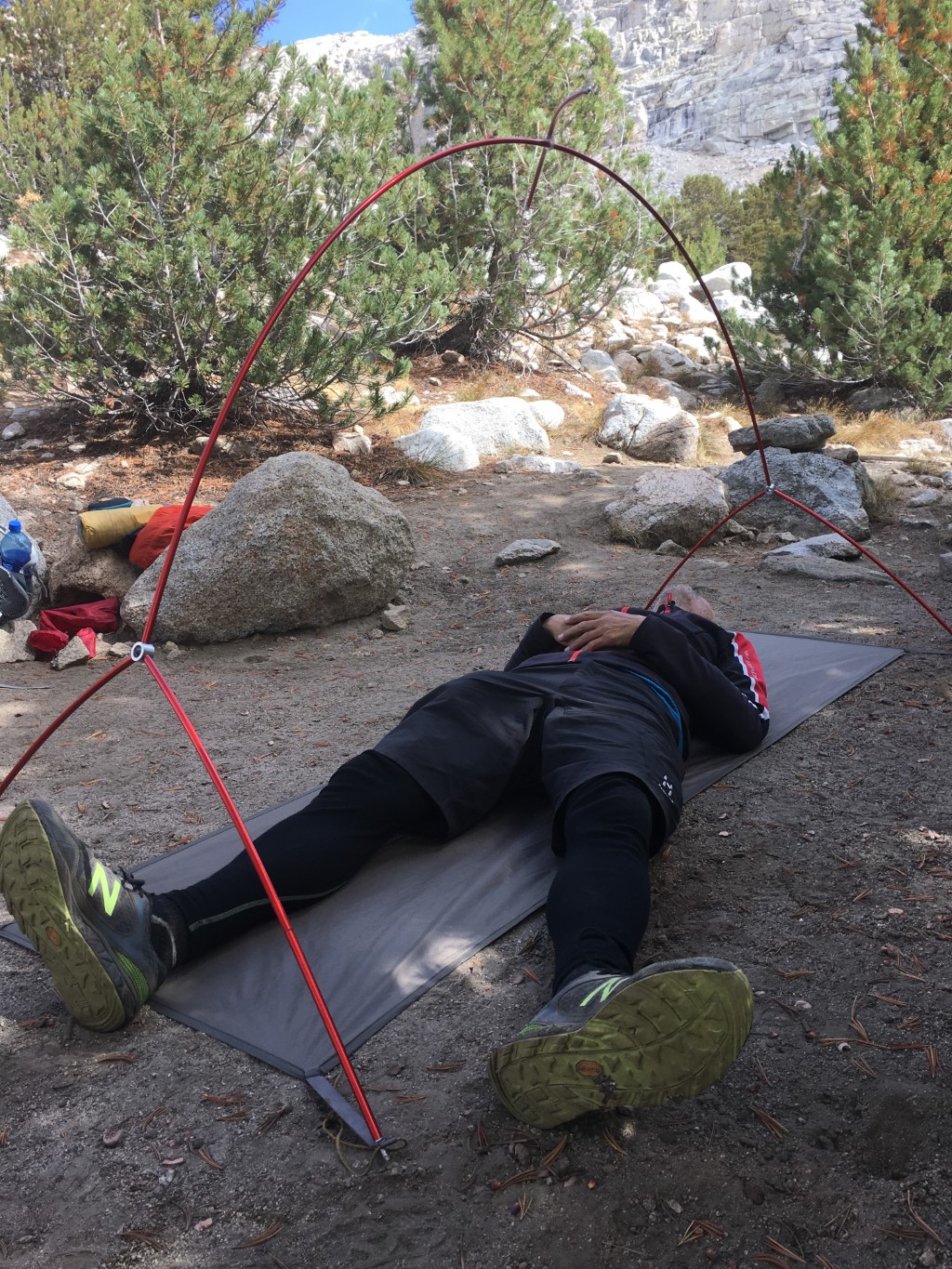 Auf rund 3500 Meter, etwa 2 Stunden unterhalb vom Forester Pass haben wir die Zelte aufgebaut. Schon bald haben sich noch 3 andere Hiker zu uns gesellt. Weil die Temperatur sehr kalt war, und immer noch ein böiger Wind blies, war nach Fußpflege, Kleider waschen und Abendessen bereits „Hiker Midnight“.