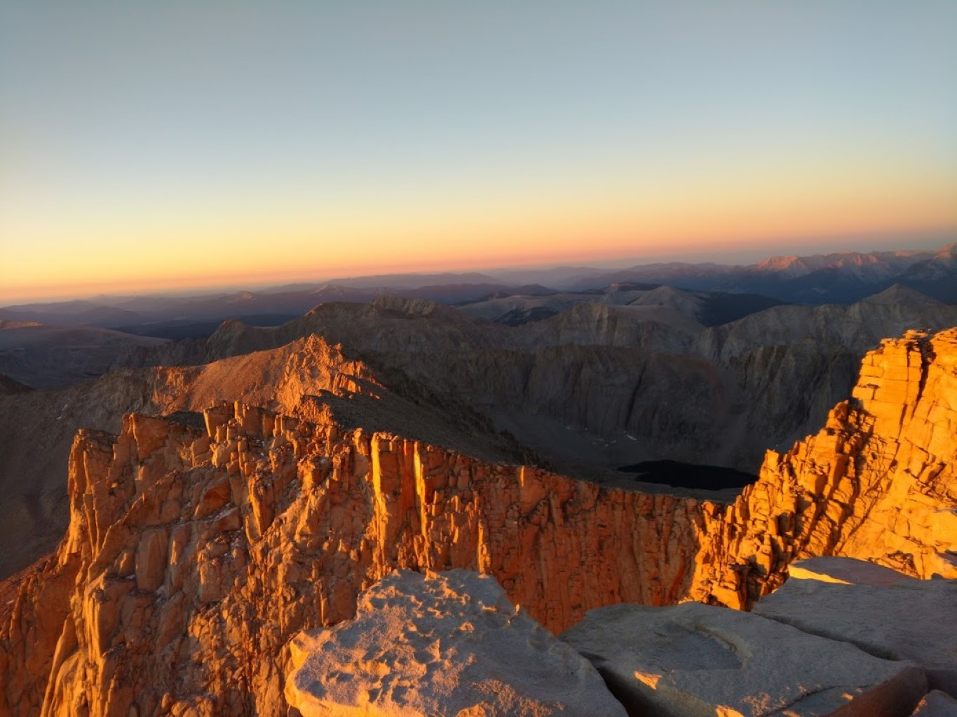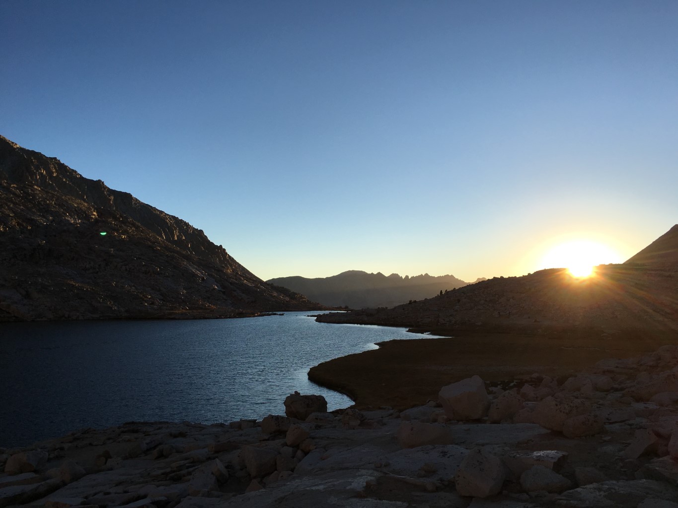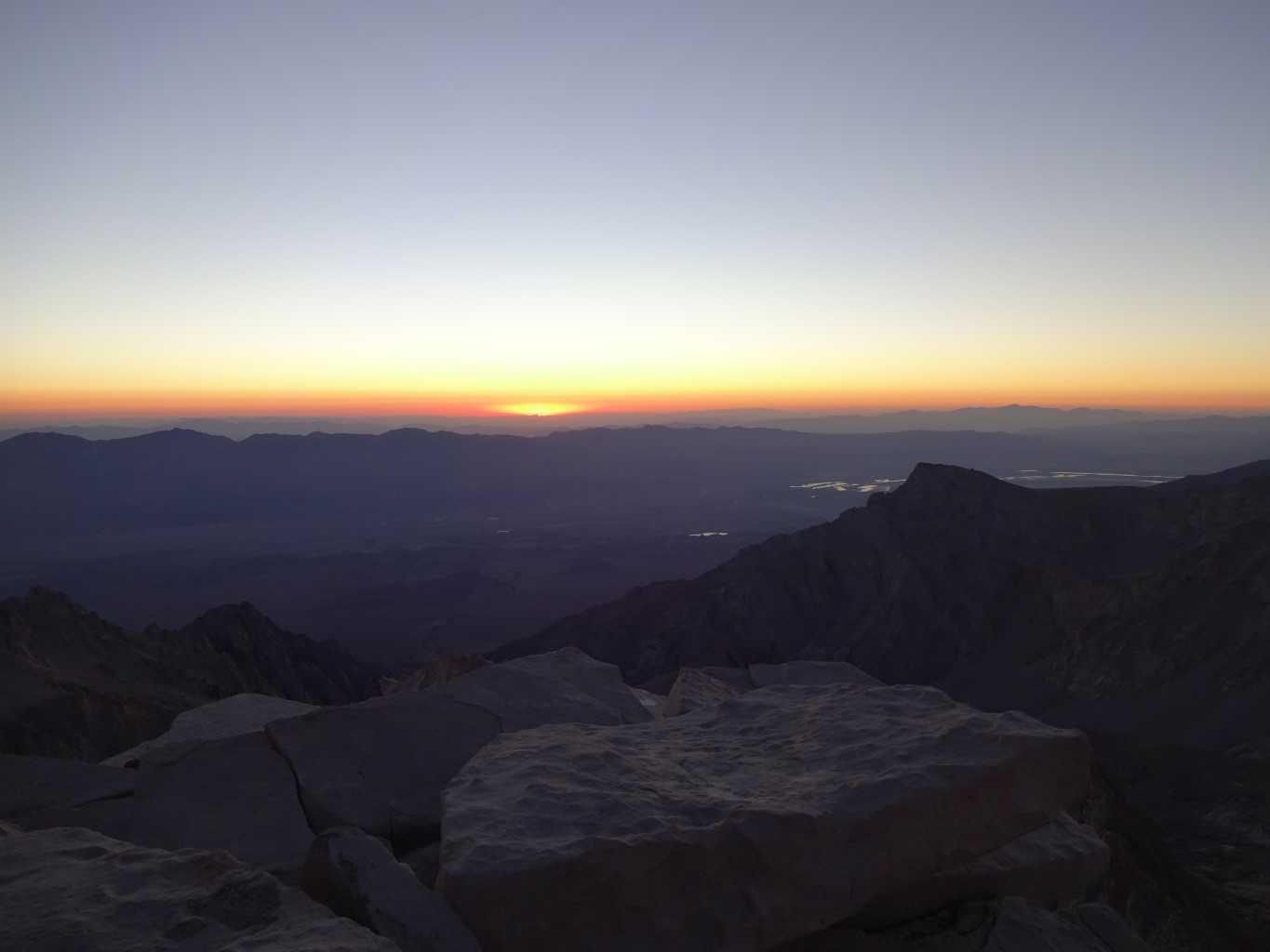 Da wir am nächsten Morgen zum Sonnenaufgang auf dem Mount Whitney sein wollen, müssen wir bereits um 3 Uhr in der Nacht losmarschieren. Deshalb haben wir die Zelte gar nicht aufgestellt, sondern nur die Matten und die Schlafsäcke ausgerollt – „Cowboy Camping“ in der Fachsprache der Hiker genannt. Nach einem wunderschönen Sonnenuntergang wird es sehr schnell kalt und wir verkriechen uns in die Schlafsäcke. Mal schauen, ob wir schlafen können.