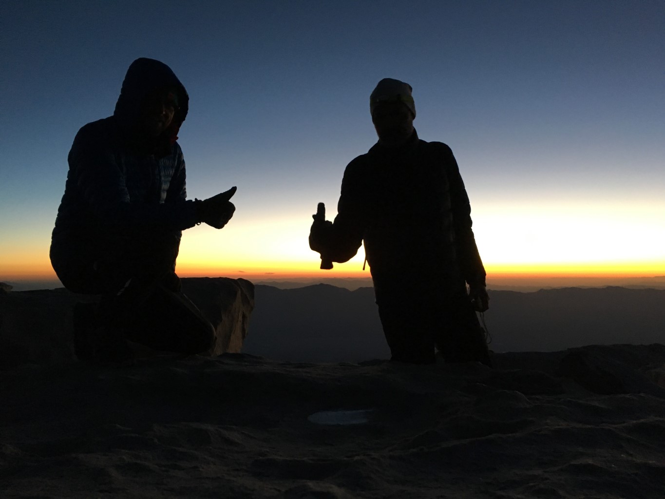 Um 6 Uhr, kurz vor Sonnenaufgang haben wir den 4421 m hohen Gipfel erreicht. Ich war überwältigt von der unendlichen Aussicht rundherum und dem schönsten Sonnenaufgang, den ich je gesehen habe 🙂 Der einzige Wermutstropfen war, dass ein heftiger und sehr kalter Wind blies. Unsere Handy Akkus gaben deshalb schon nach ein par wenigen Fotos den Geist auf 🙁