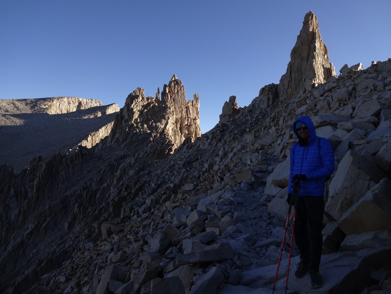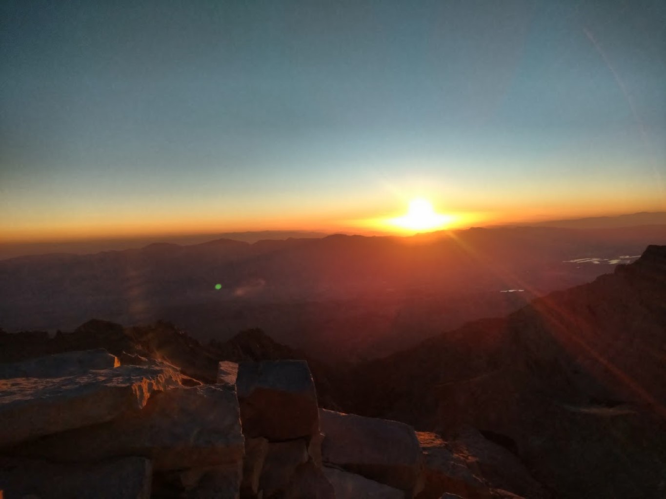 Um 3 Uhr morgens sind wir aufgestanden und haben im Schein der Stirnlampen die Sachen im Rucksack verstaut und Kaffee gekocht. Eine halbe Stunde später nahmen wir die restlichen 1000 Höhenmeter zum Mount Whitney in Angriff. Auf 4100 m, beim Junction zum Whiteny Portal haben wir die Rucksäcke deponiert und konnten so die restlichen 300 Höhenmeter ohne schwere Last am Rücken bewältigen.