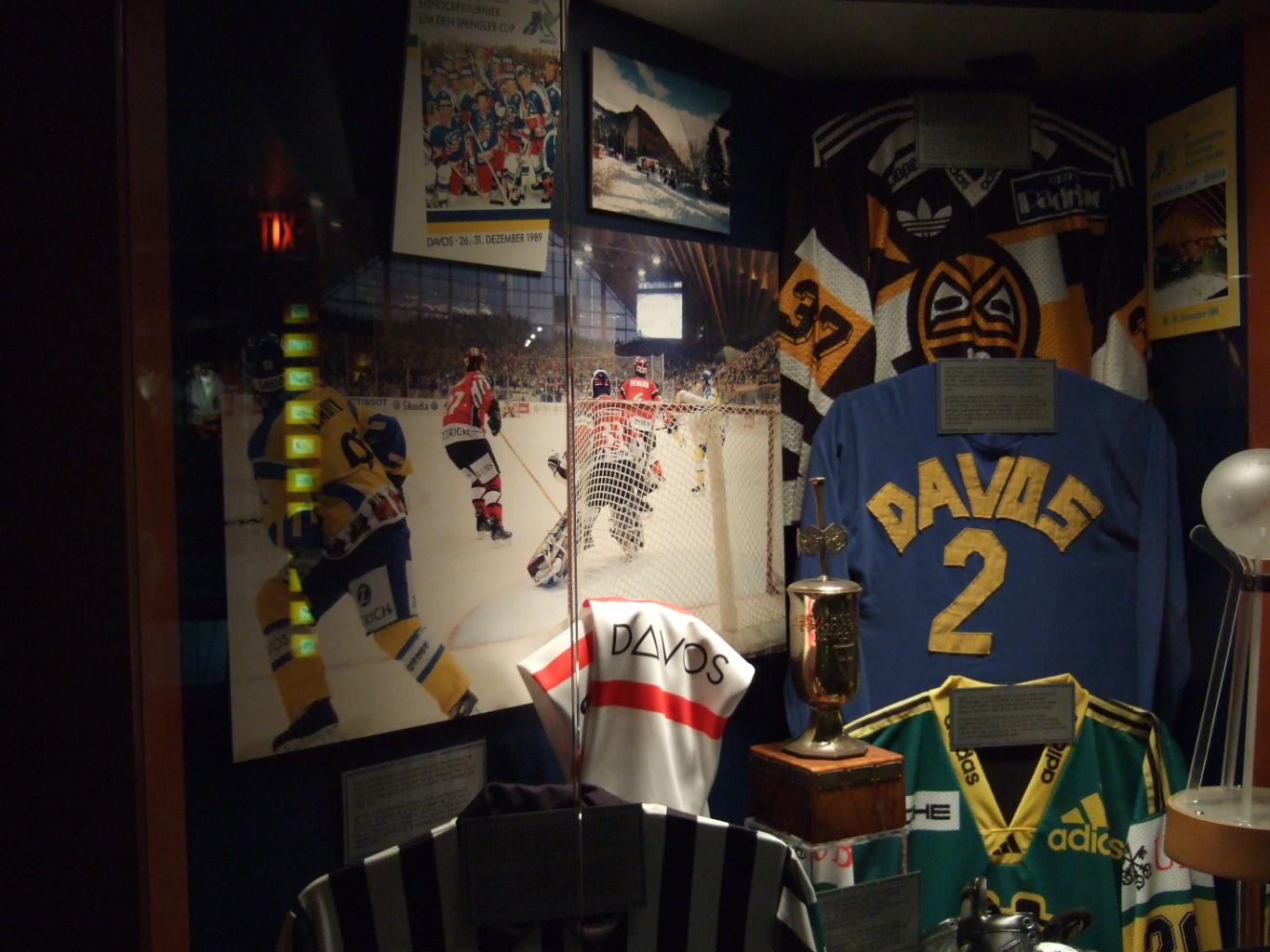 Wieder unten angekommen, liefen wir Richtung Hockey Hall of Fame, in dem wir uns viele Spieler Shirts, Bilder von Joe Thornton, Rick Nash, und auch vom Spengler Cup Davos betrachteten. Das Highlight des Museums waren die alten Davoser Spielerleibchen, von denen ich beinahe einen Lachanfall bekommen hatte. Wie sich die Zeit doch ändert 😉