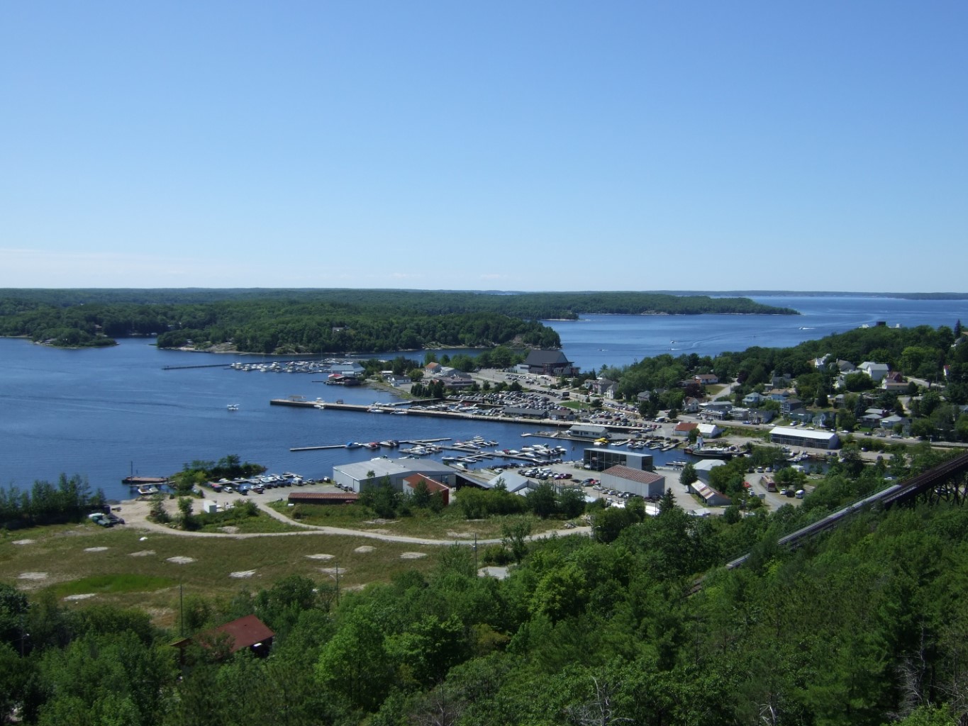 Bei Chippewa Cruises buchen wir eine 2 stündige Rundfahrt. Die Wartezeit überbrücken wir mit einem kurzen Fussmarsch zum Firelookout des Städtchens Parry Sound. Vom Turm, der auf einem Hügel steht, hat man einen super Ausblick auf die Region.