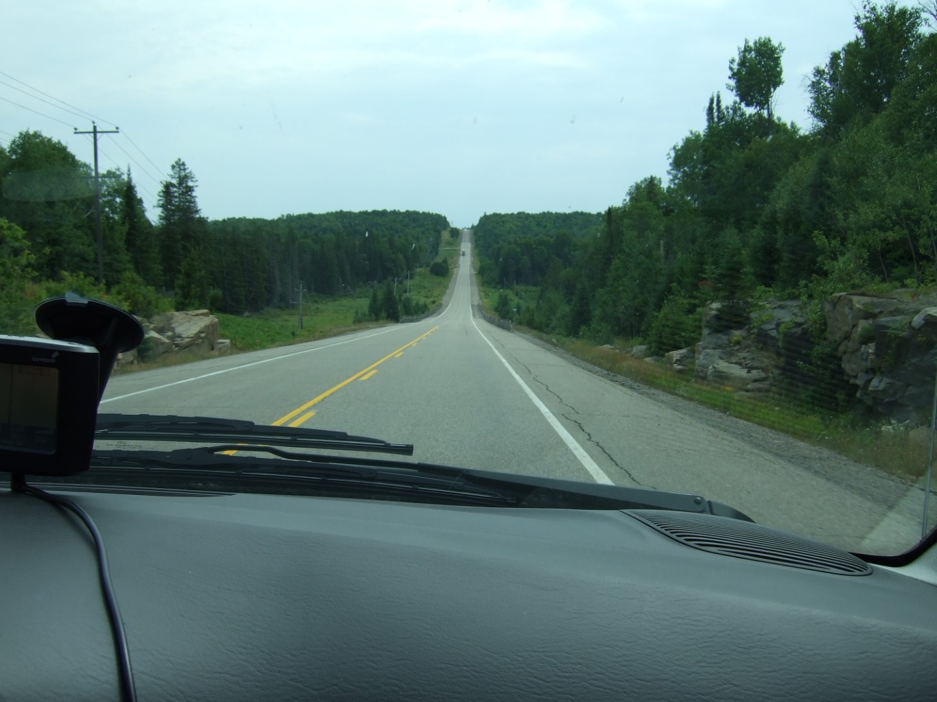 Das Wetter ist wechselhaft. Kurze Regenschauer wechseln mit längeren trockenen Abschnitten. Die letzten 200 km verlaufen durch Wald und nichts als Wald. Je weiter wir nach Norden kommen, desto kürzer werden die Regenpausen.