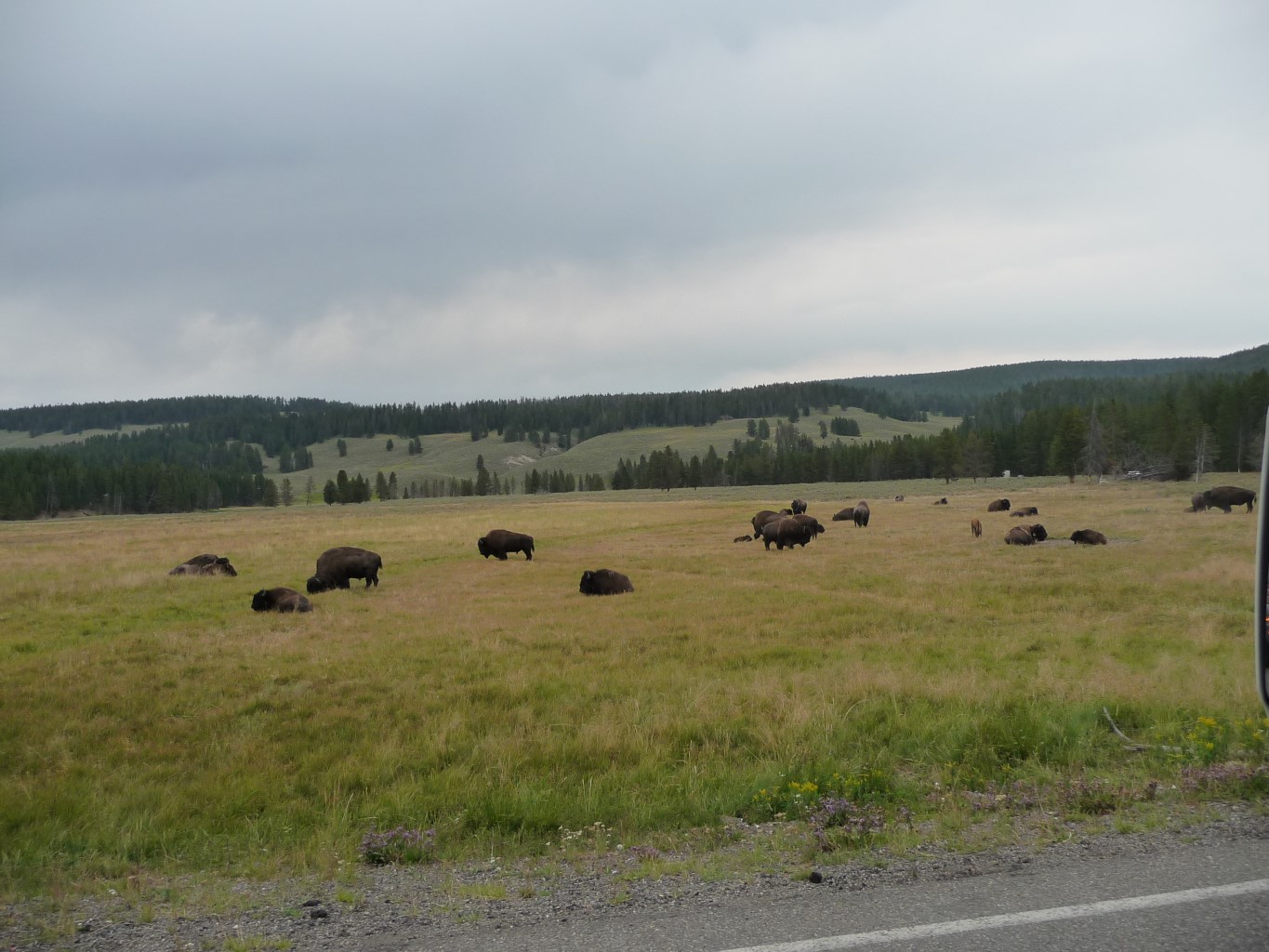 Beim Weiterfahren durchs Hayden Valley entdeckten wir zahlreiche Bisons in grossen Gruppen. Es war ein herrliches Bild. Später erlebten wir den ersten Regen seit unserer Ankunft in Amerika.