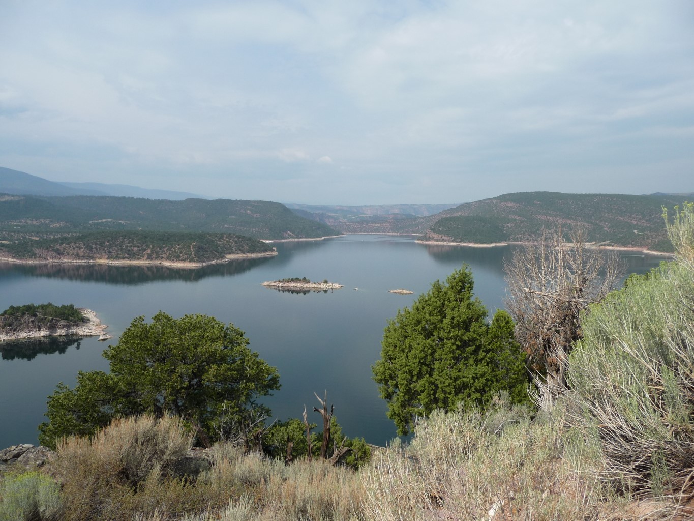 Wir fuhren dann ca. 3 Stunden via Flaming Gorge Reservoir zum Dinosaur National Monument. Beim Visitor Center assen wir ein leckeres Joghurt und setzten uns danach in den Tour Zug um zum „Museum“ zu fahren.