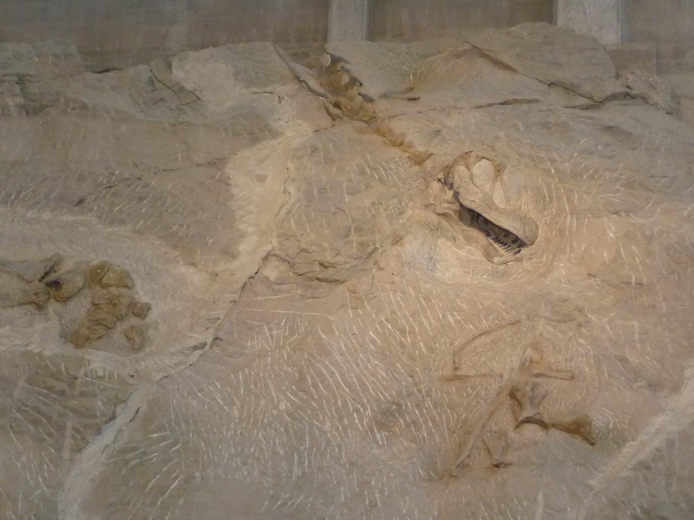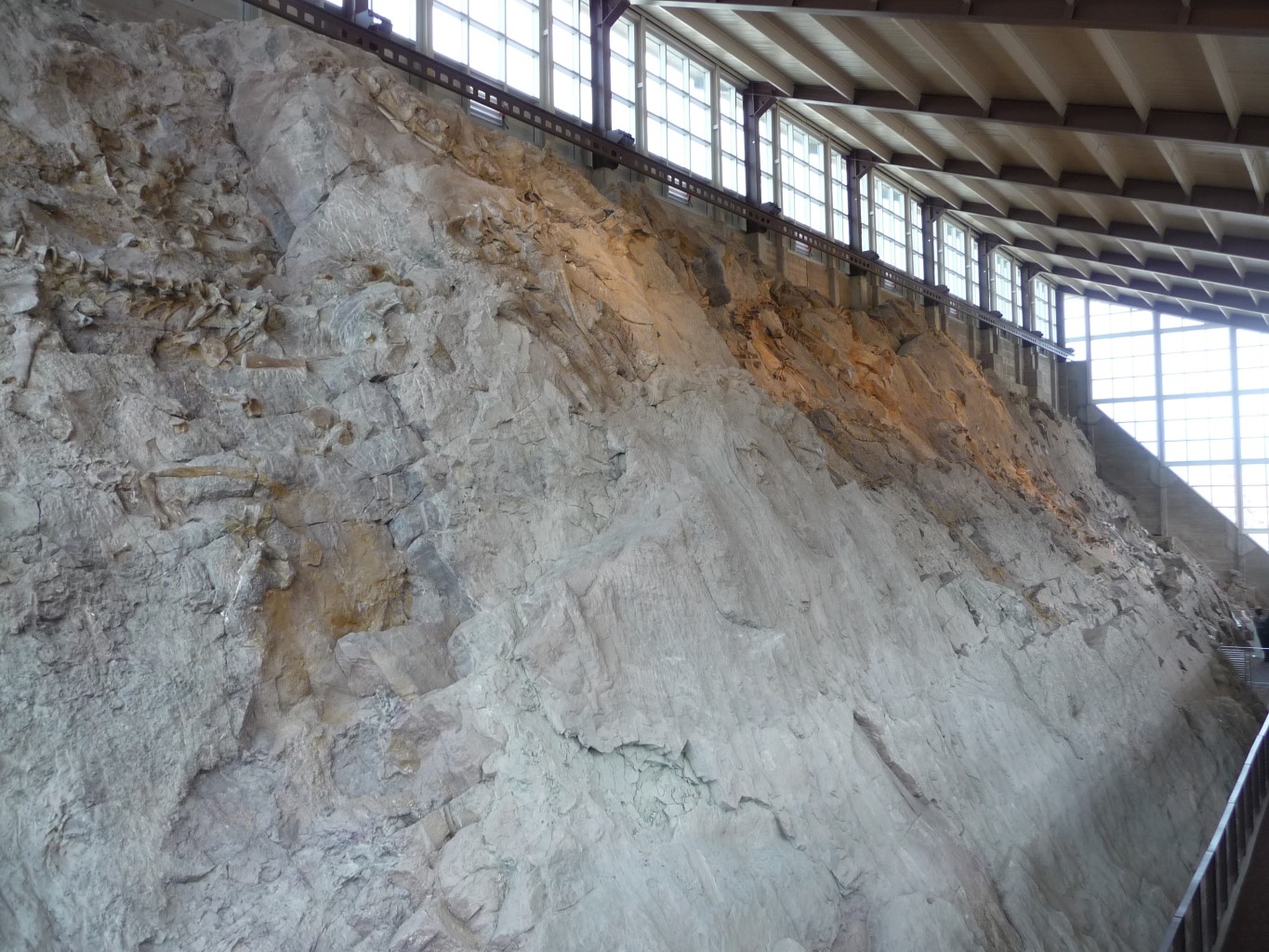 Das Museumsgebäude war um eine Felswand gebaut worden, die riesige Mengen an Dinosaurierknochen enthielt. Da vor Millionen vor Jahren die Knochen an diese Felswand angeschwemmt wurden, ergaben sie meist keine sinnvolle Reihenfolge. Den Rückweg zum Visitor Center gingen wir zu Fuss.