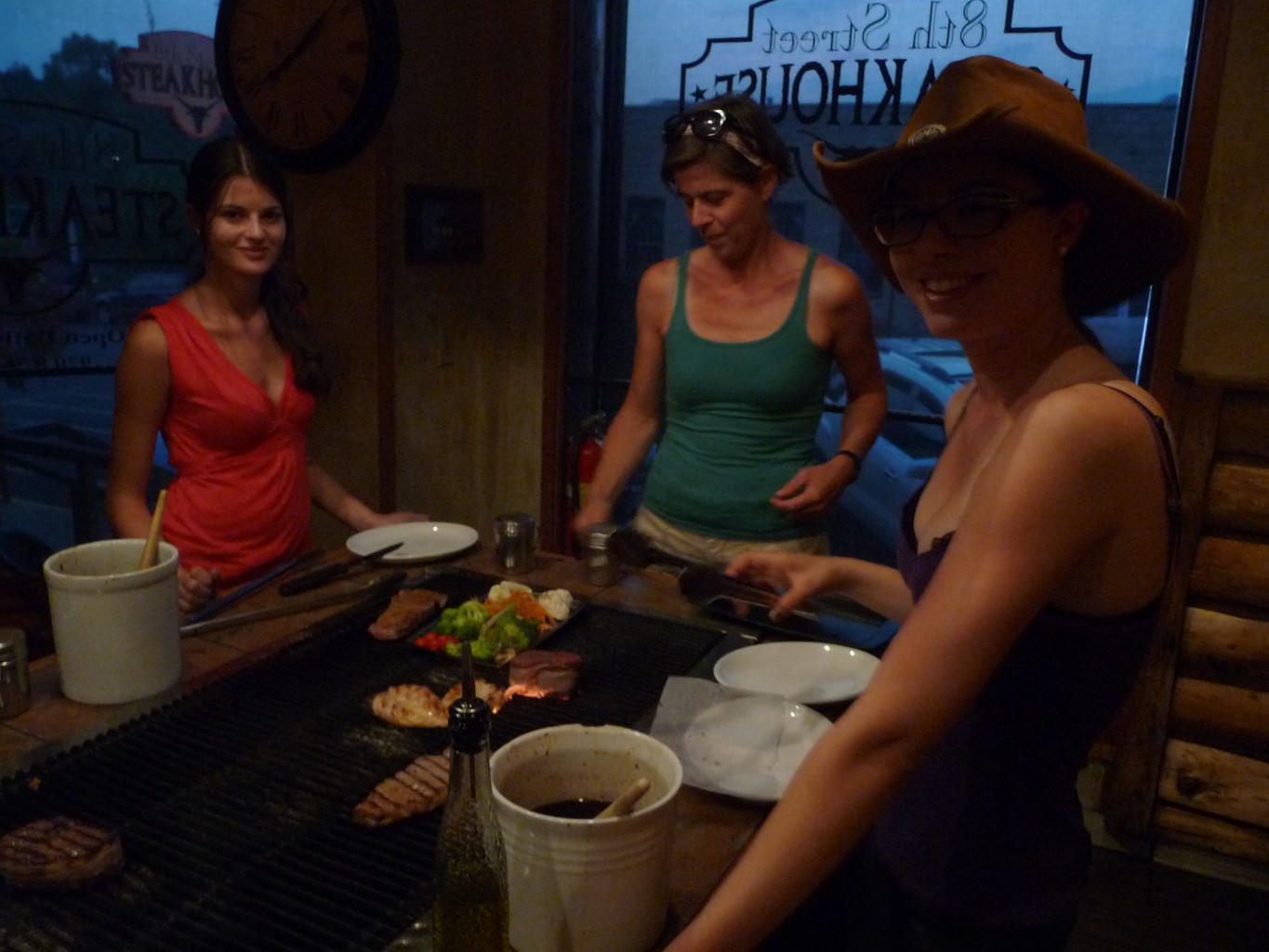 Unser Abendessen nahmen wir in einem Steak House ein. Das Lokal war richtig Western like eingerichtet und das Essen war grandios. Salat konnte jeder schöpfen soviel er wollte. Danach ging es weiter zu einer Vitrine mit Fleisch. Das ausgewählte Fleischstück konnte man dann auf einem riesigen Grill selber grillieren. Schlussendlich bezahlte man nur das Fleisch und pro Beilage 3 Dollar. Die Beilagen wurden im Korb serviert, so dass alle davon essen konnten.