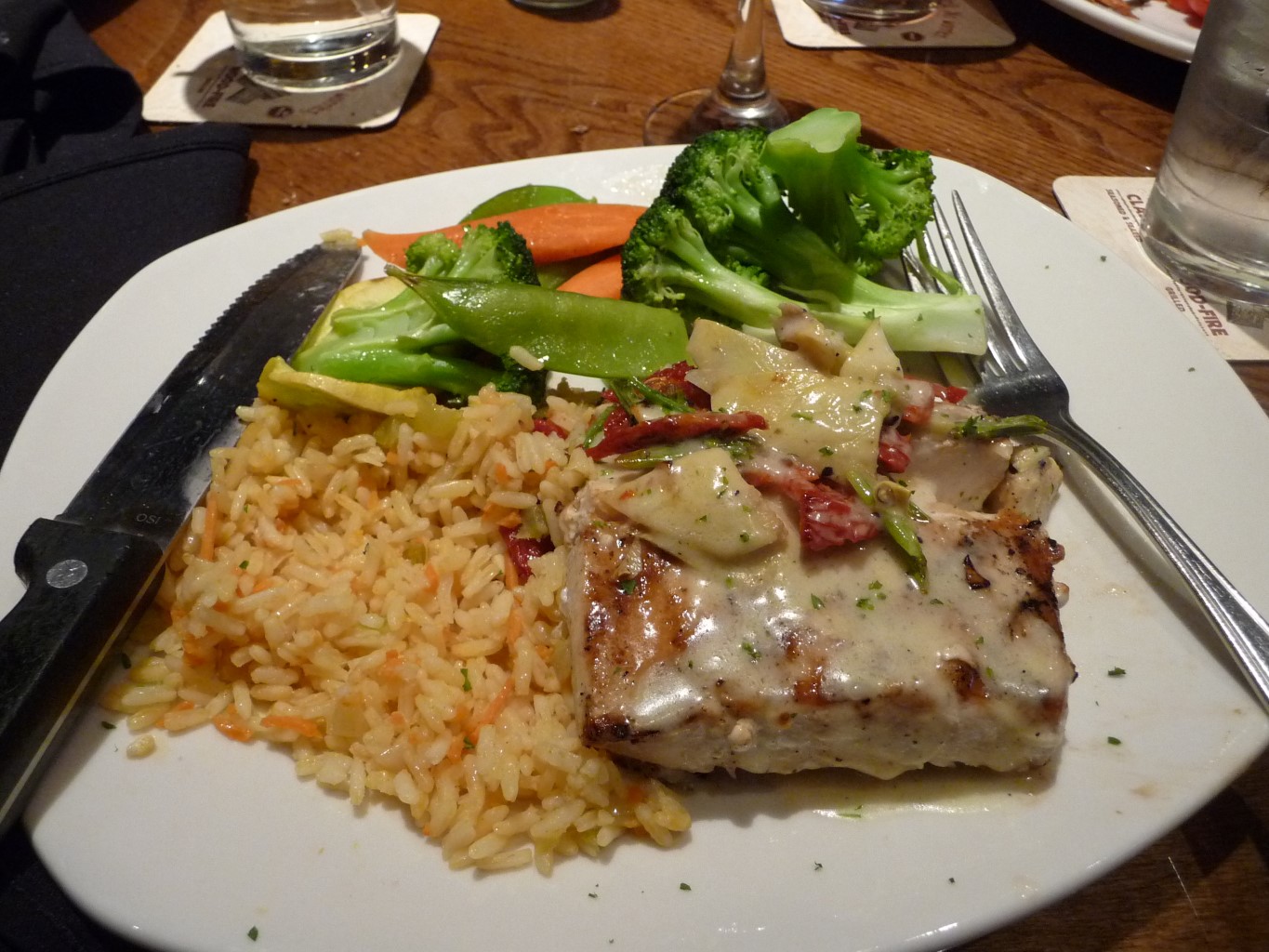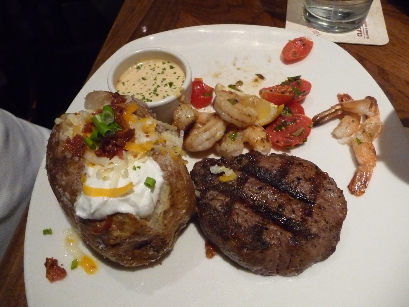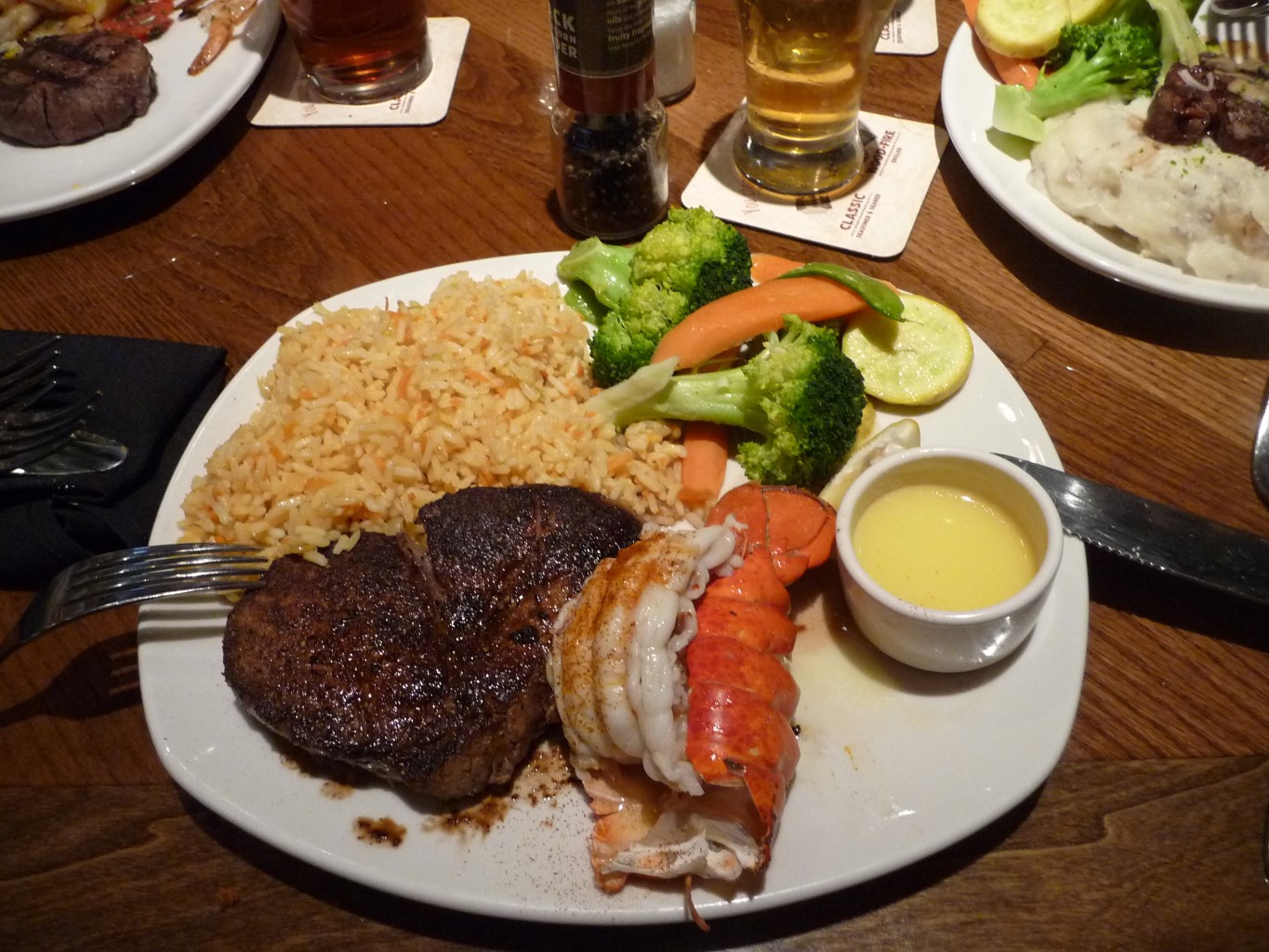 Nachdem alle geduscht hatten, ging es ins benachbarte Outback zum Dinner. Meine Menukombination – Rindsfilet mit Lobstertail war sensationell !