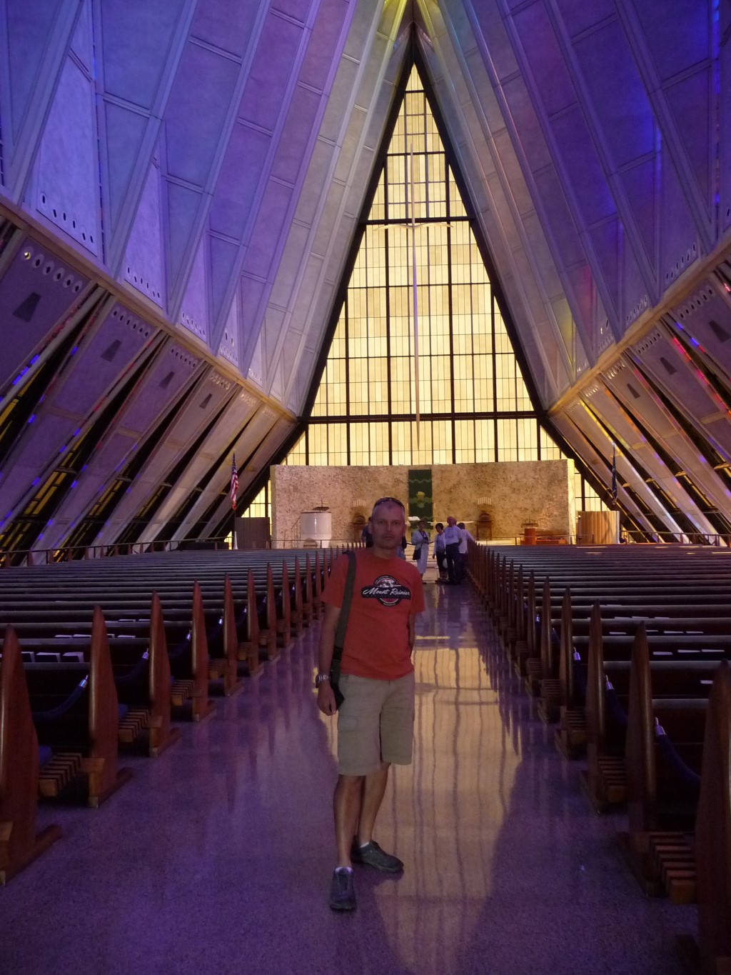 Nach dem Frühstück machten wir uns auf Richtung Colorado Springs, wo wir die Air Force Academy besuchen wollten. Bei der Einfahrt mussten wir unsere Pässe zeigen und der Kofferraum wurde kontrolliert.
