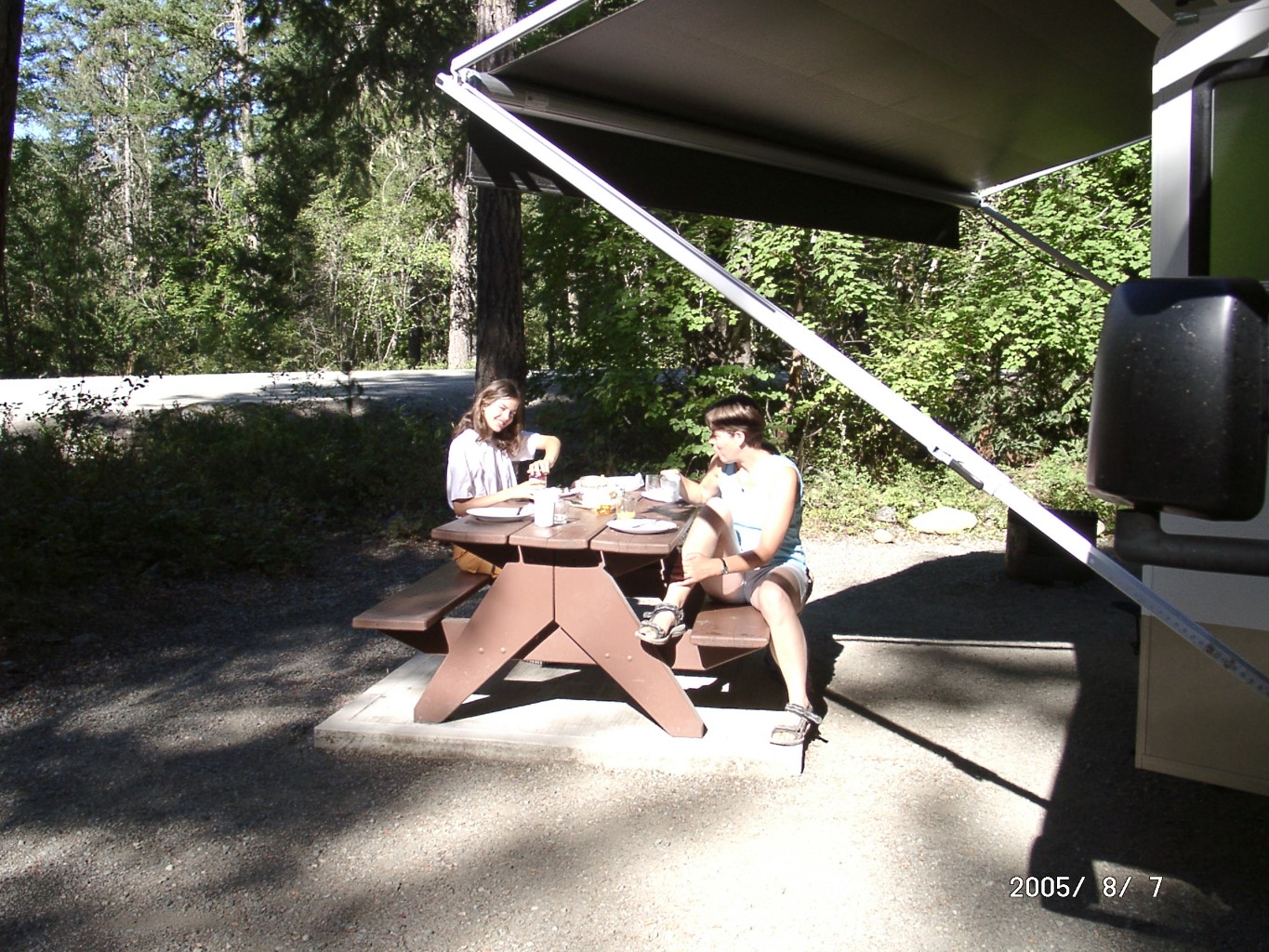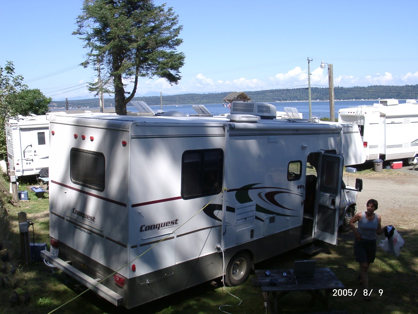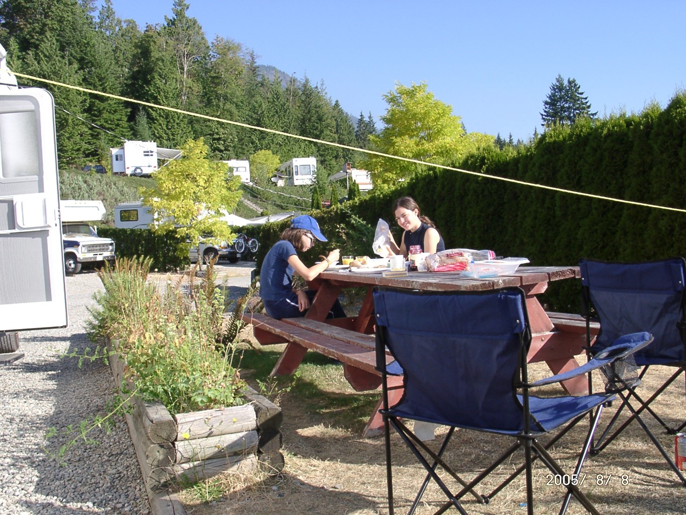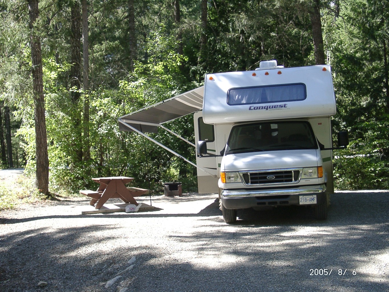 Beim Hafen checken wir für eine Nacht auf dem Telegraph Cove Resorts Campground ein. Die Reservation per Internet hat sich wie bei den vorgängigen Campingplätzen bewährt. Die Campsites selbst befinden sich ca. 500 Meter oberhalb des Hafens in einem Wald. Schnell haben wir unser Wohnmobil verkabelt und eingerichtet.