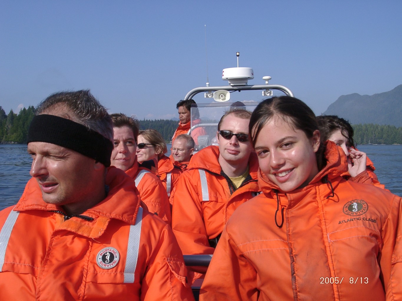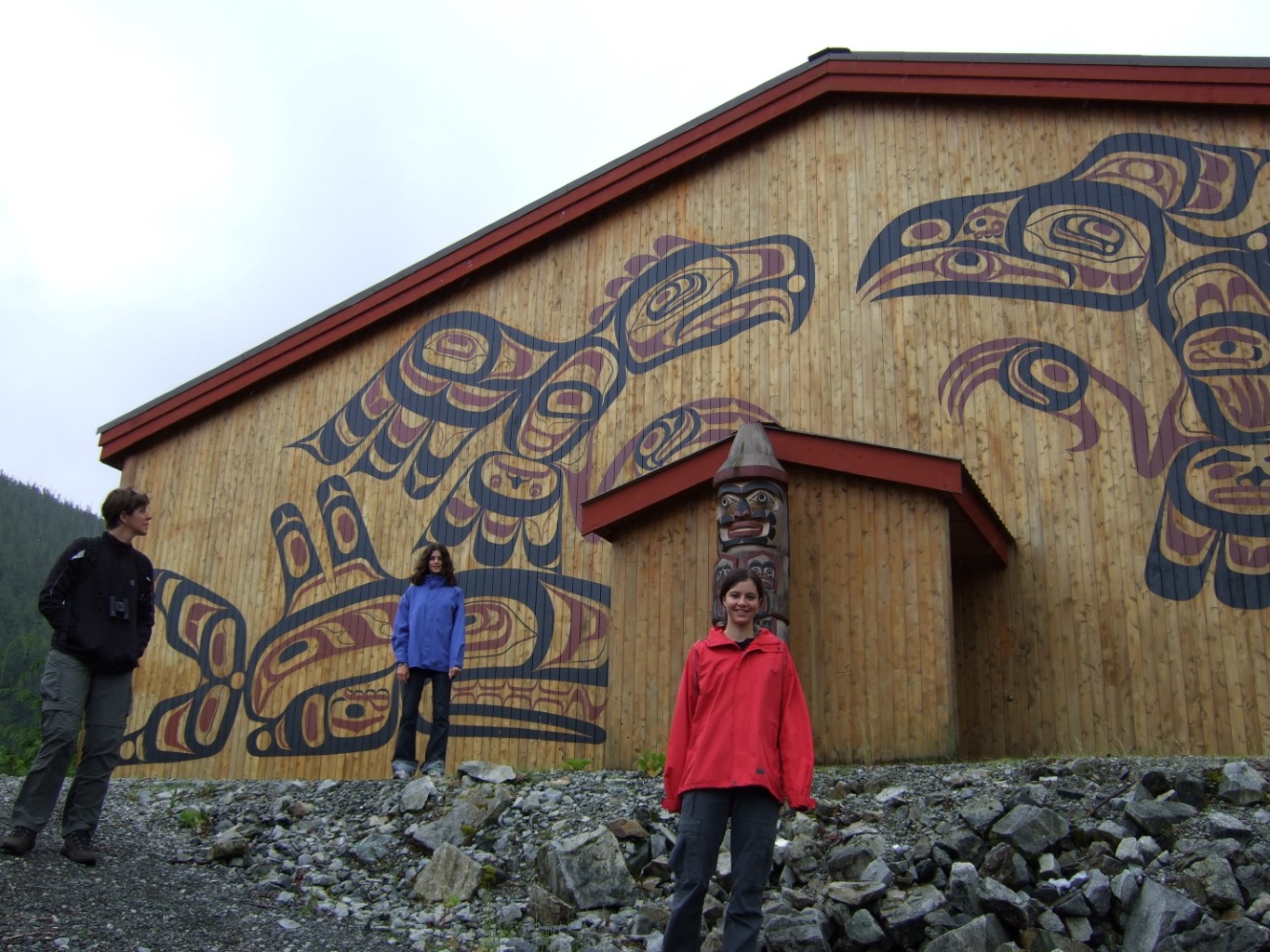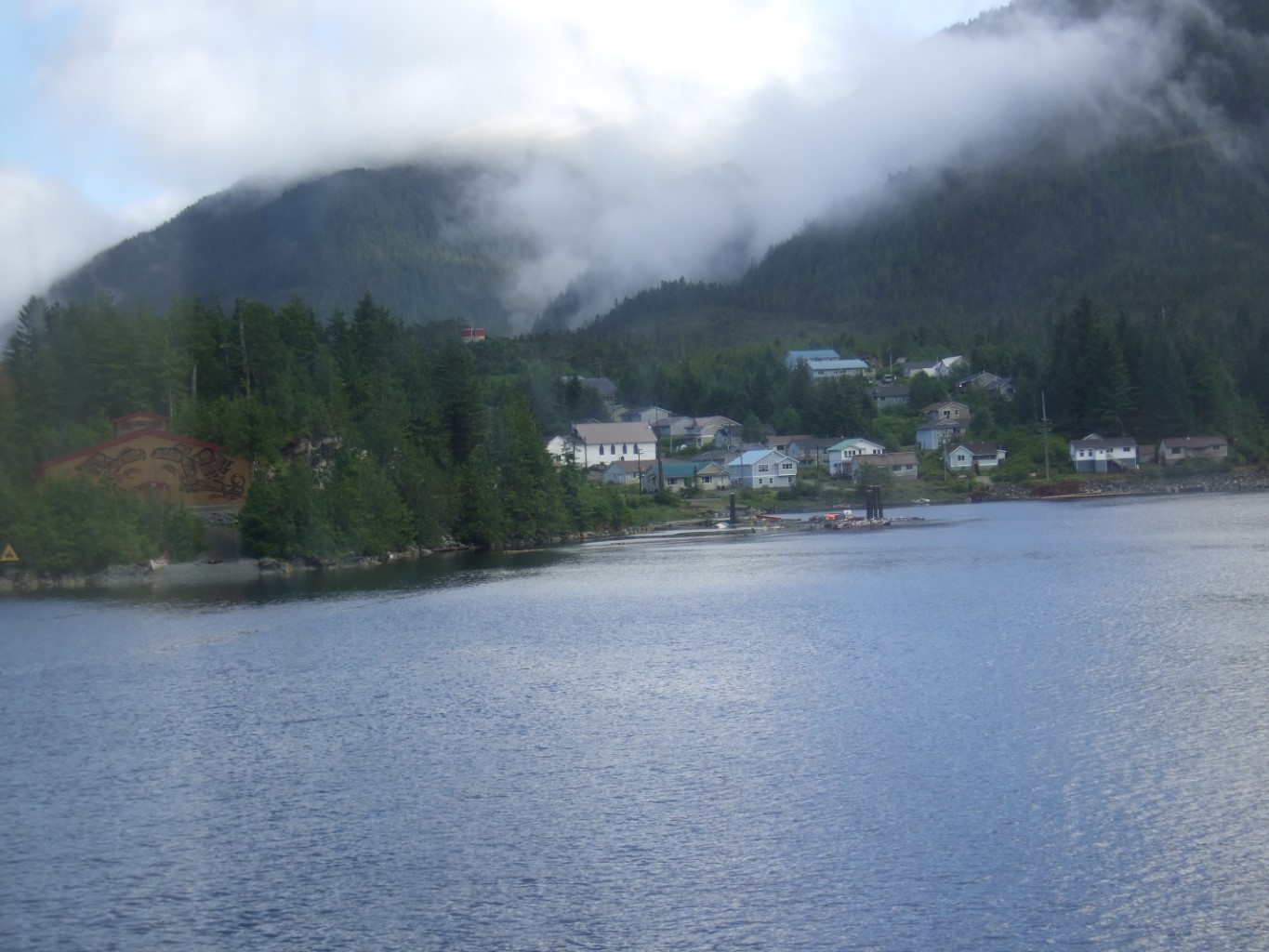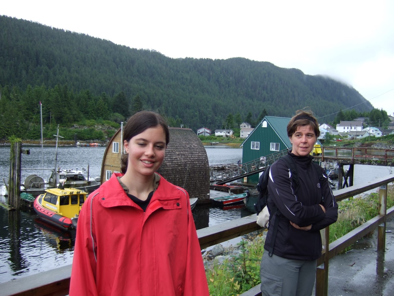 Dafür bekamen Papi und Ladina eine Dusche, als eine hohe Pazifikwelle über die Reling schwappte. Am frühen Nachmittag erreichten wir die First Nation Siedlung Klemtu.