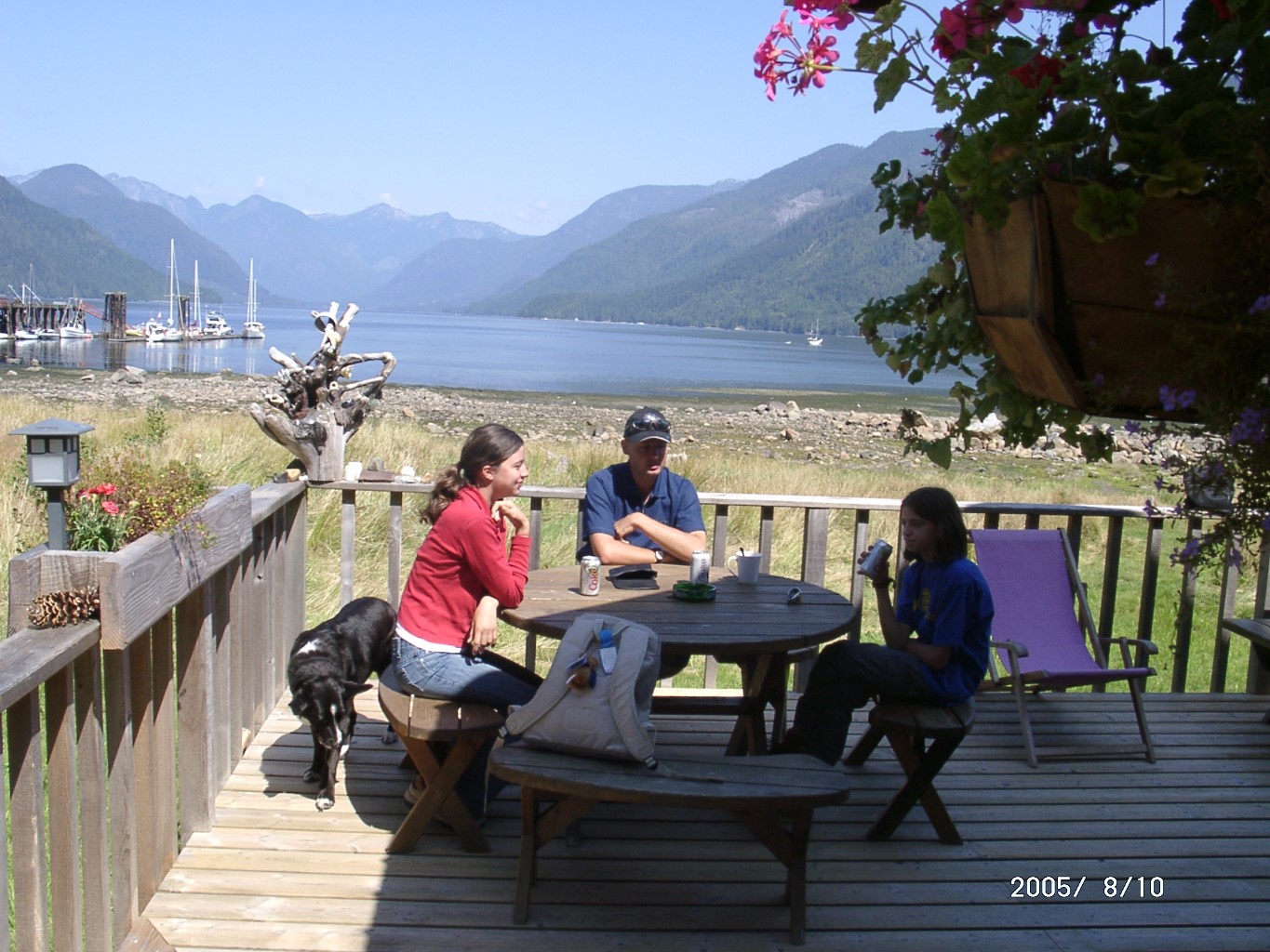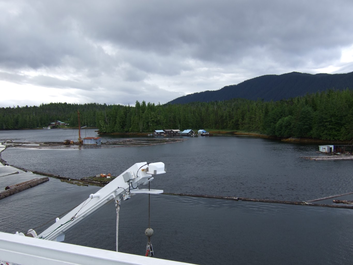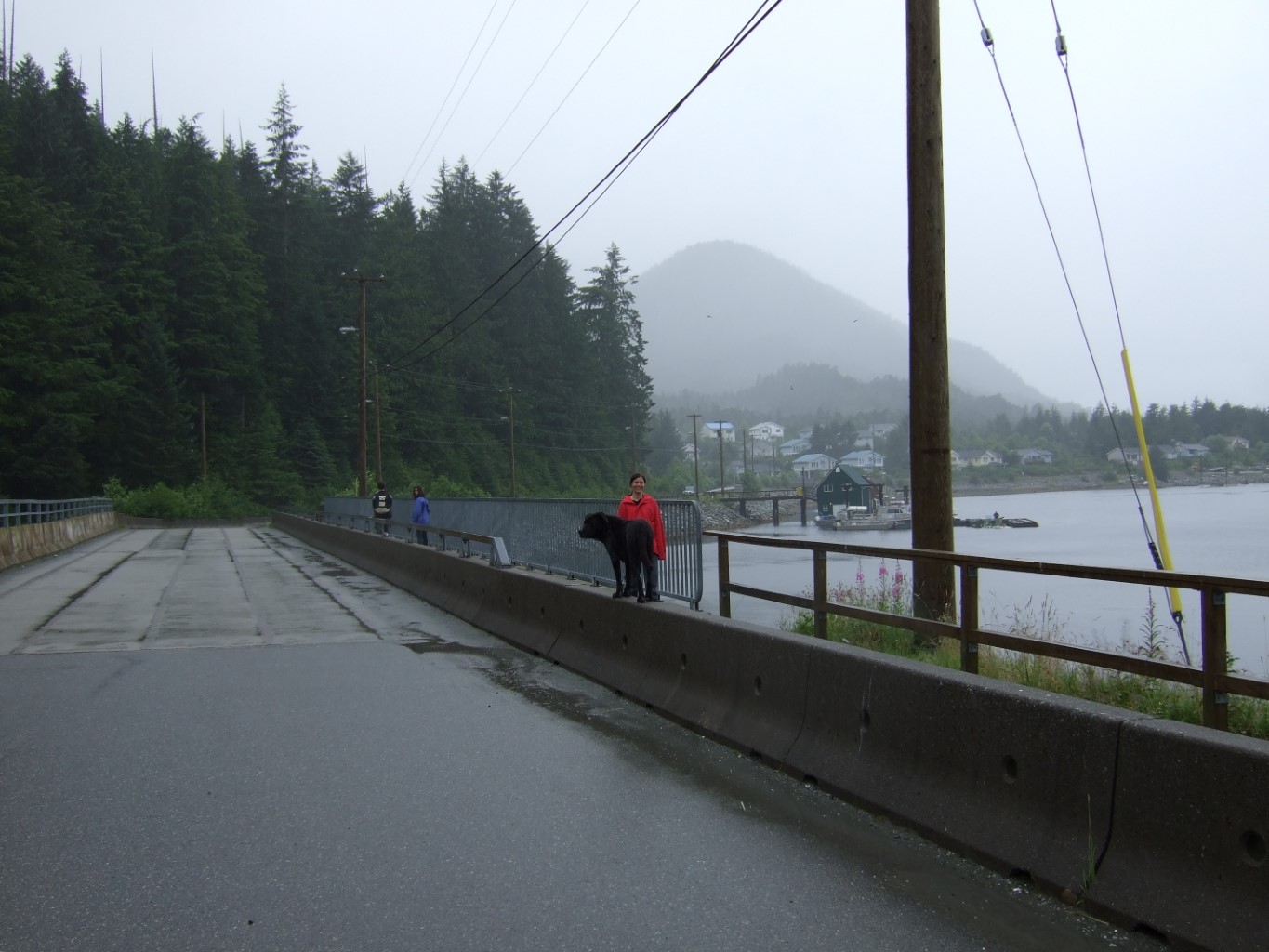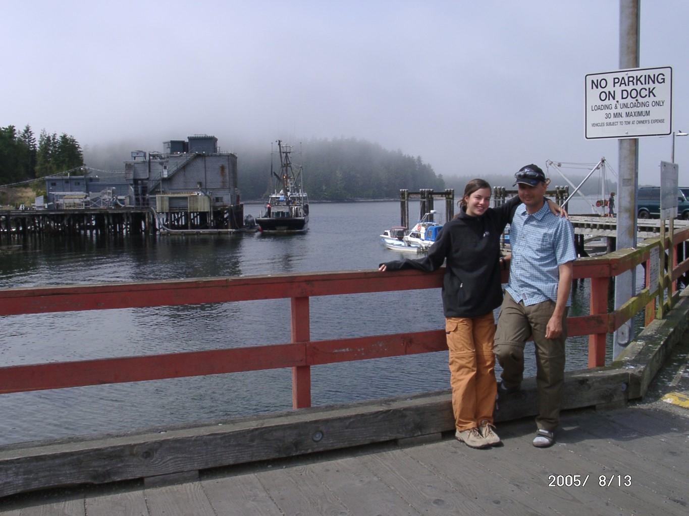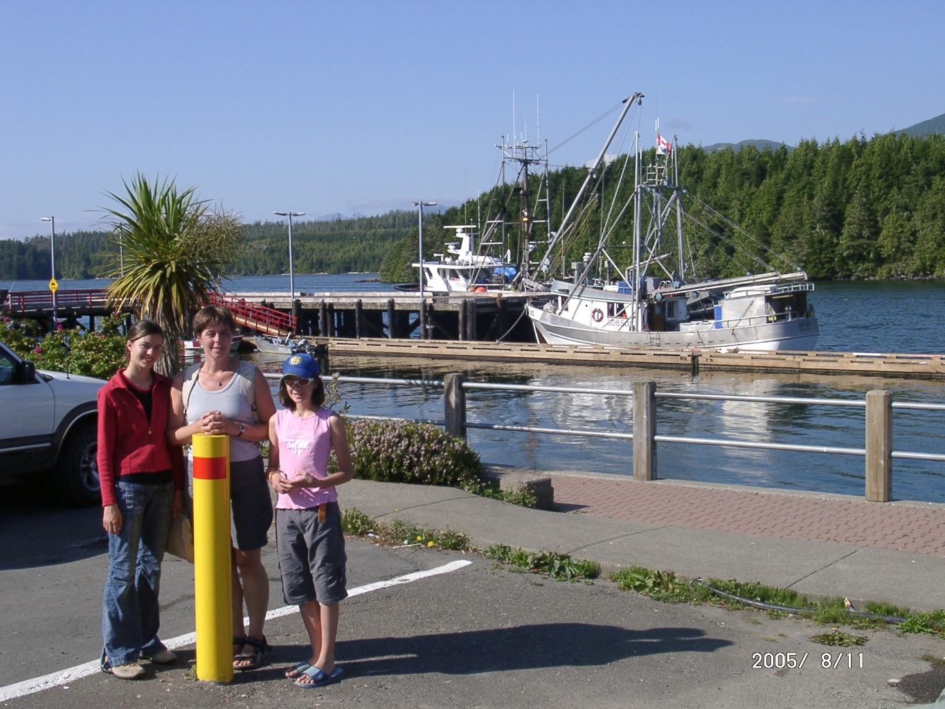 Dafür bekamen Papi und Ladina eine Dusche, als eine hohe Pazifikwelle über die Reling schwappte. Am frühen Nachmittag erreichten wir die First Nation Siedlung Klemtu.