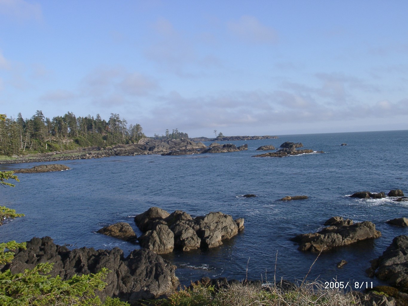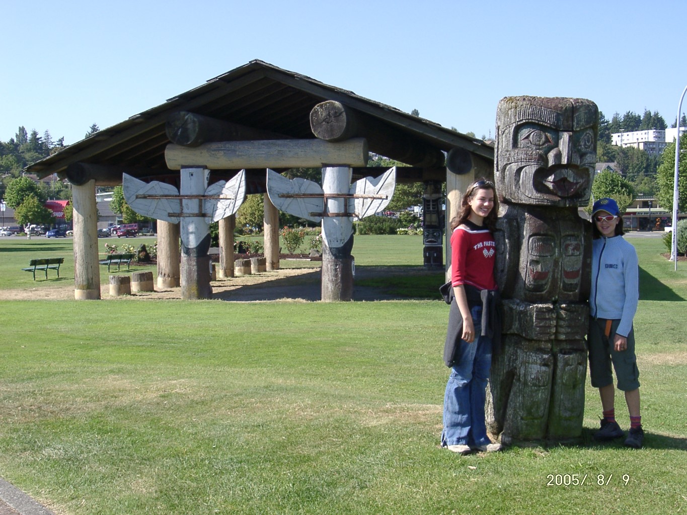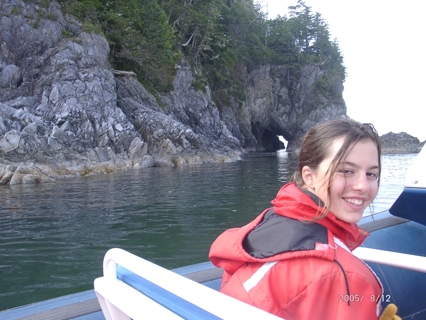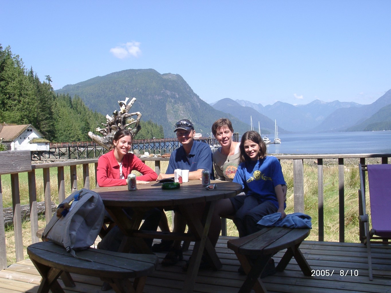 Dafür bekamen Papi und Ladina eine Dusche, als eine hohe Pazifikwelle über die Reling schwappte. Am frühen Nachmittag erreichten wir die First Nation Siedlung Klemtu.