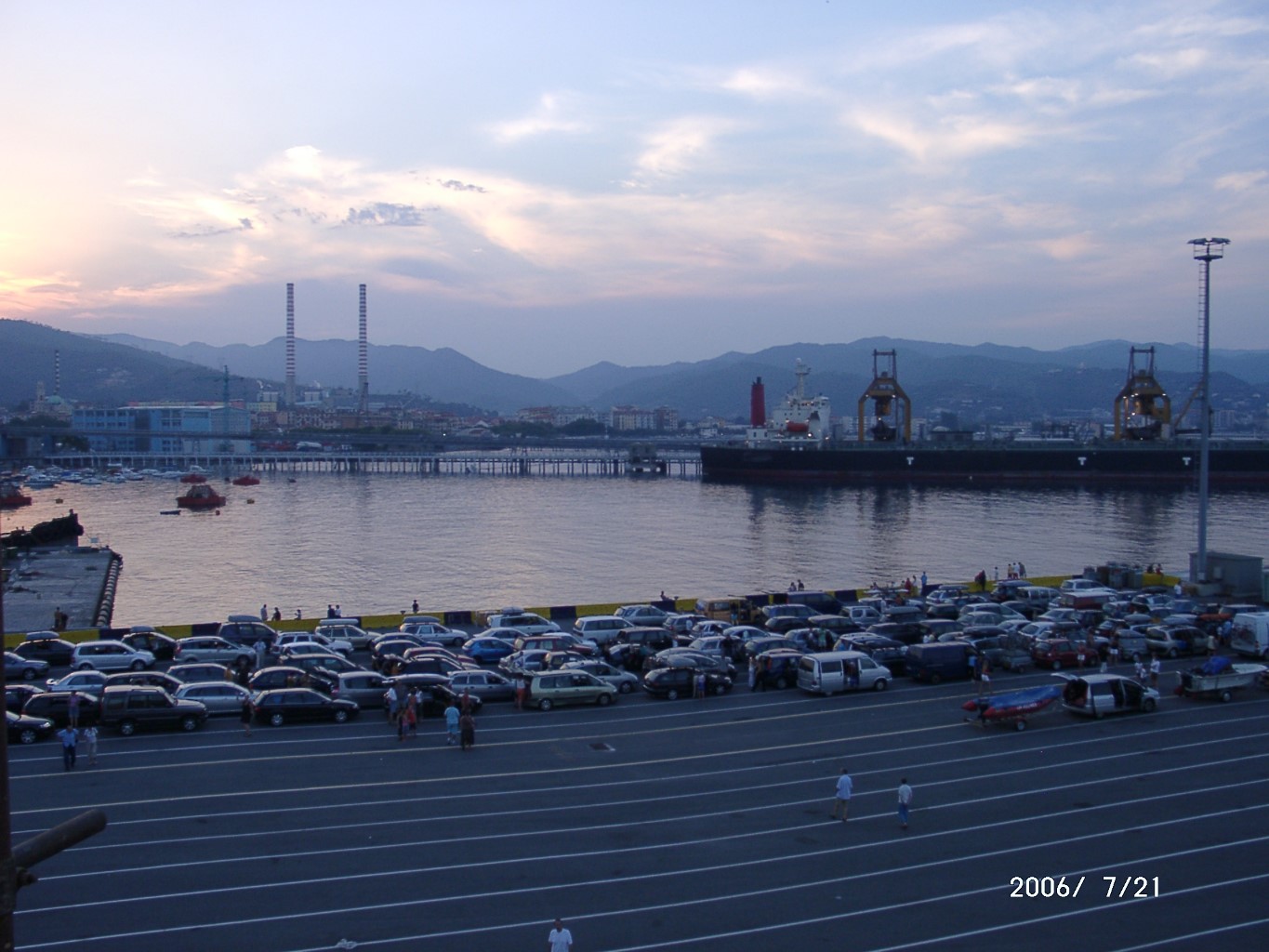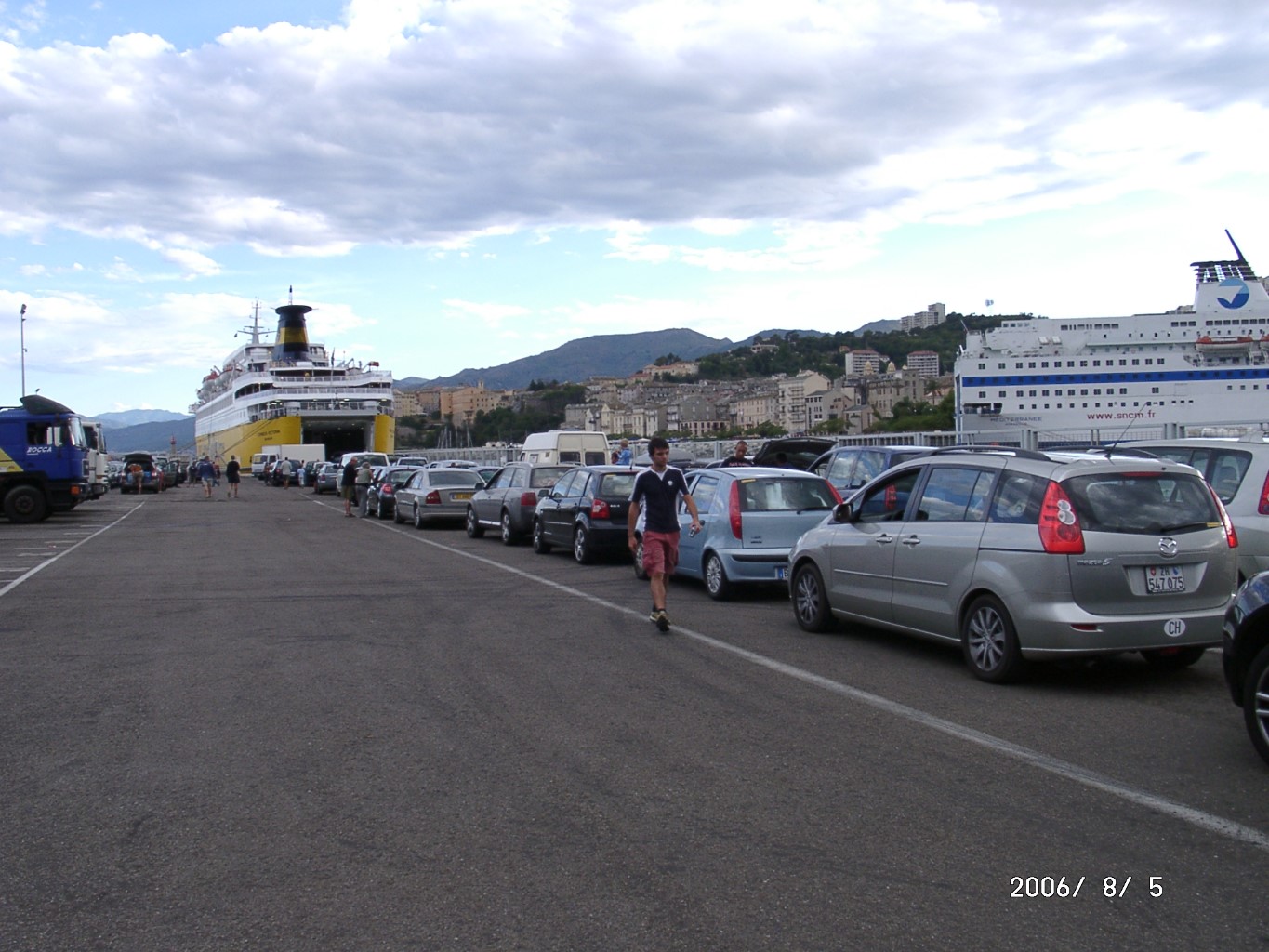 Um zirka 8.15 Uhr fuhren wir vom Camping hinunter zum Hafen. Um halb neun Uhr holten wir unsere Boardingpässe ab und warteten draußen bis es los ging.