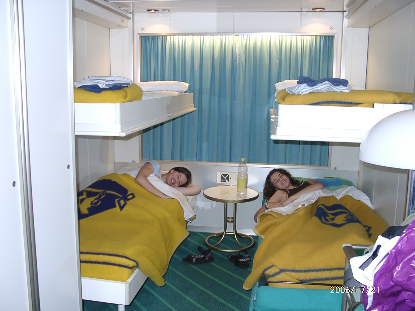 Nach 2 Std. Wartezeit konnten wir dann endlich auf das Schiff fahren. Um 21:30 Uhr legte die Fähre ab. Wir machten es uns auf den Schlafsitzen bequem.