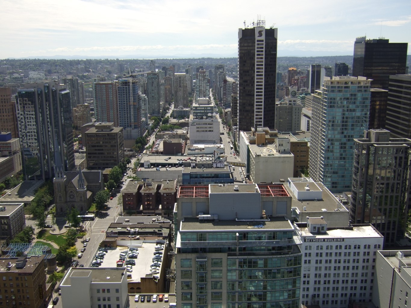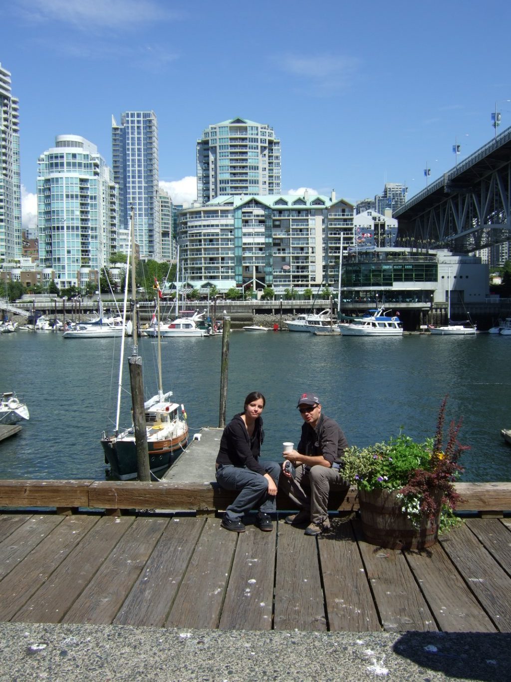 Alle waren froh, als die Räder der Air Canada endlich den Boden berührt haben und wir aussteigen konnten. Mit einem blauen Taxi sind wir dann mitten in die Stadt Vancouver gefahren.