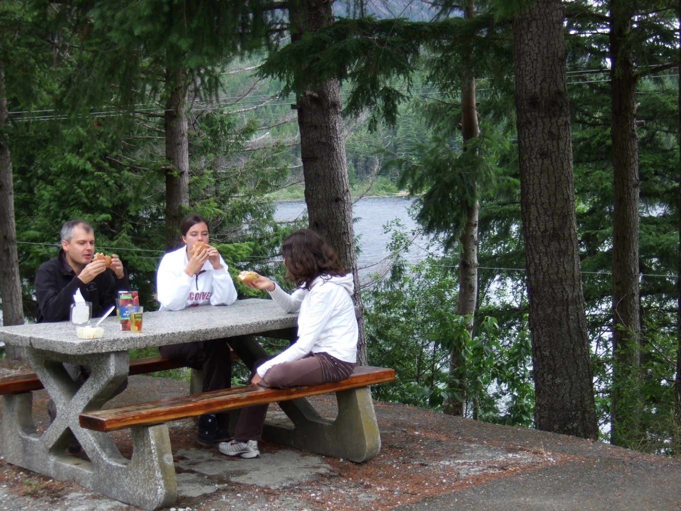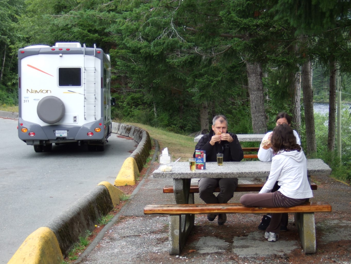Nach Campbell River gibt es nur noch eine Spur und die Strasse verläuft kurviger. Am schönen Roberts Lake machen wir einen Lunchstop.