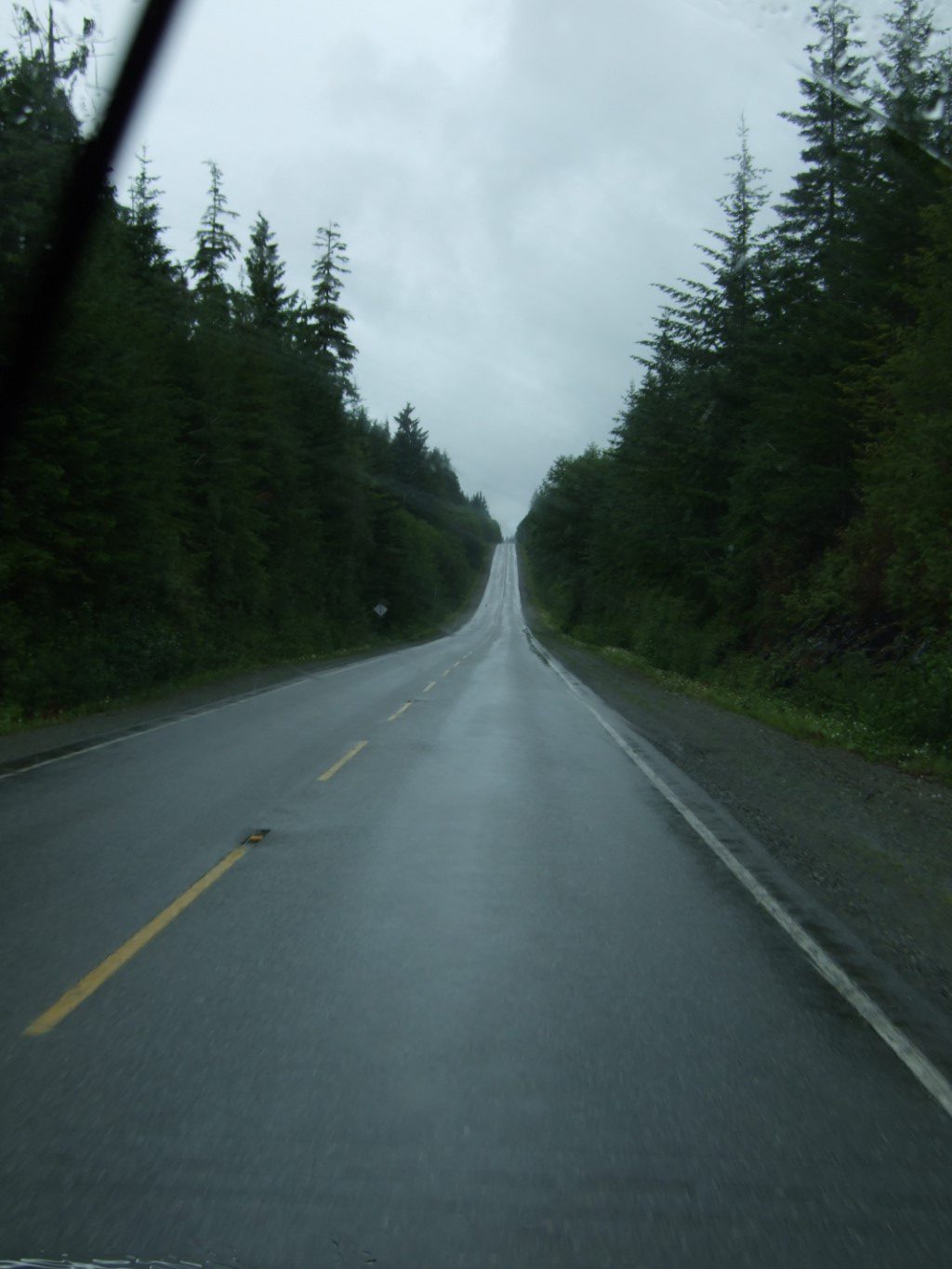 Das Wetter ist wechselhaft. Kurze Regenschauer wechseln mit längeren trockenen Abschnitten. Die letzten 200 km verlaufen durch Wald und nichts als Wald. Je weiter wir nach Norden kommen, desto kürzer werden die Regenpausen.