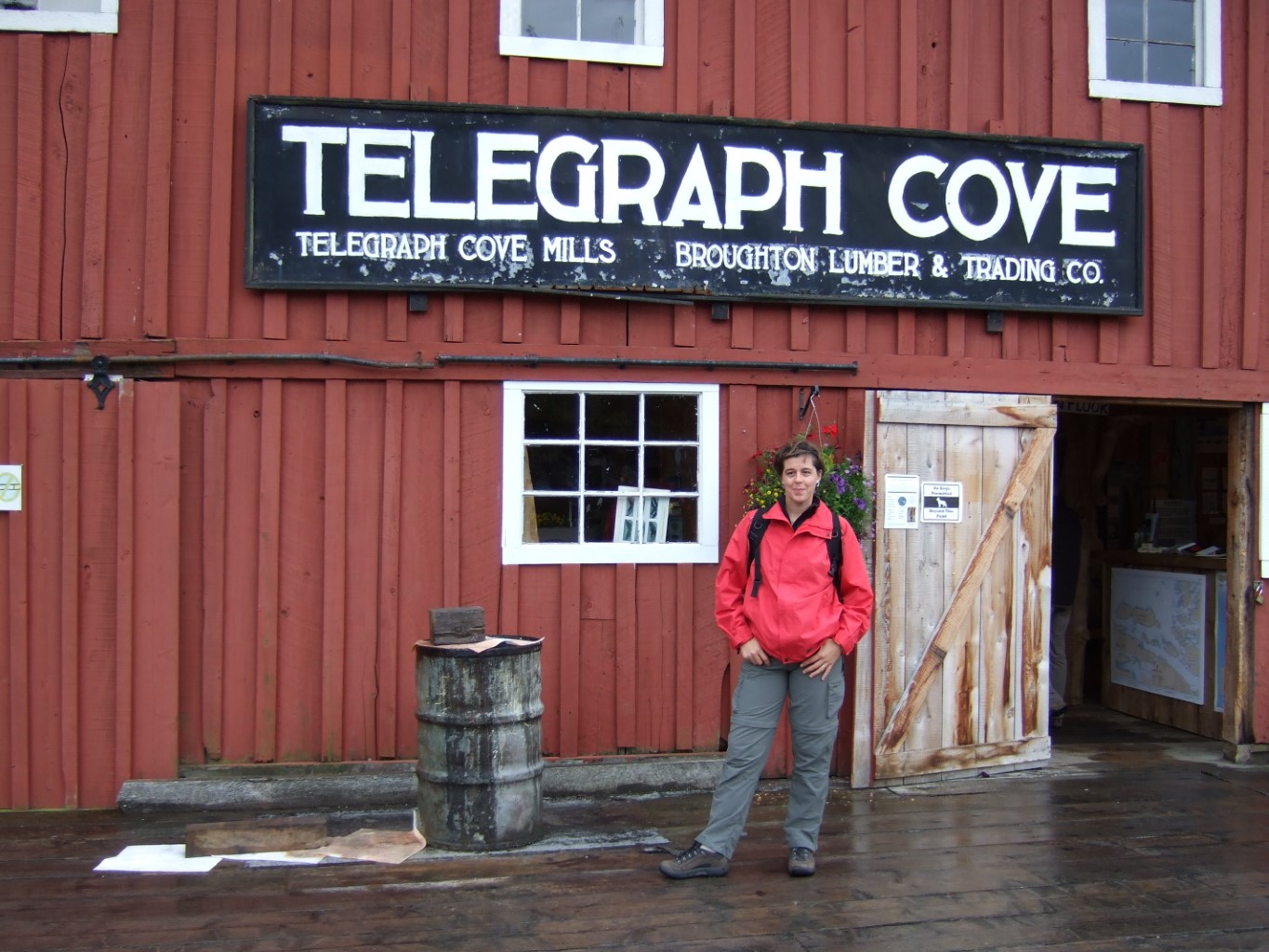 Um halb vier haben wir Telegraph Cove erreicht. Das kleine Nest versprüht einen ganz besonderen Charme. Kleine farbige Holzhäuser auf Stelzen umsäumen eine hübsche Meeresbucht.